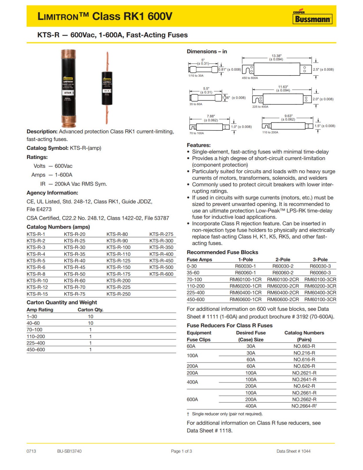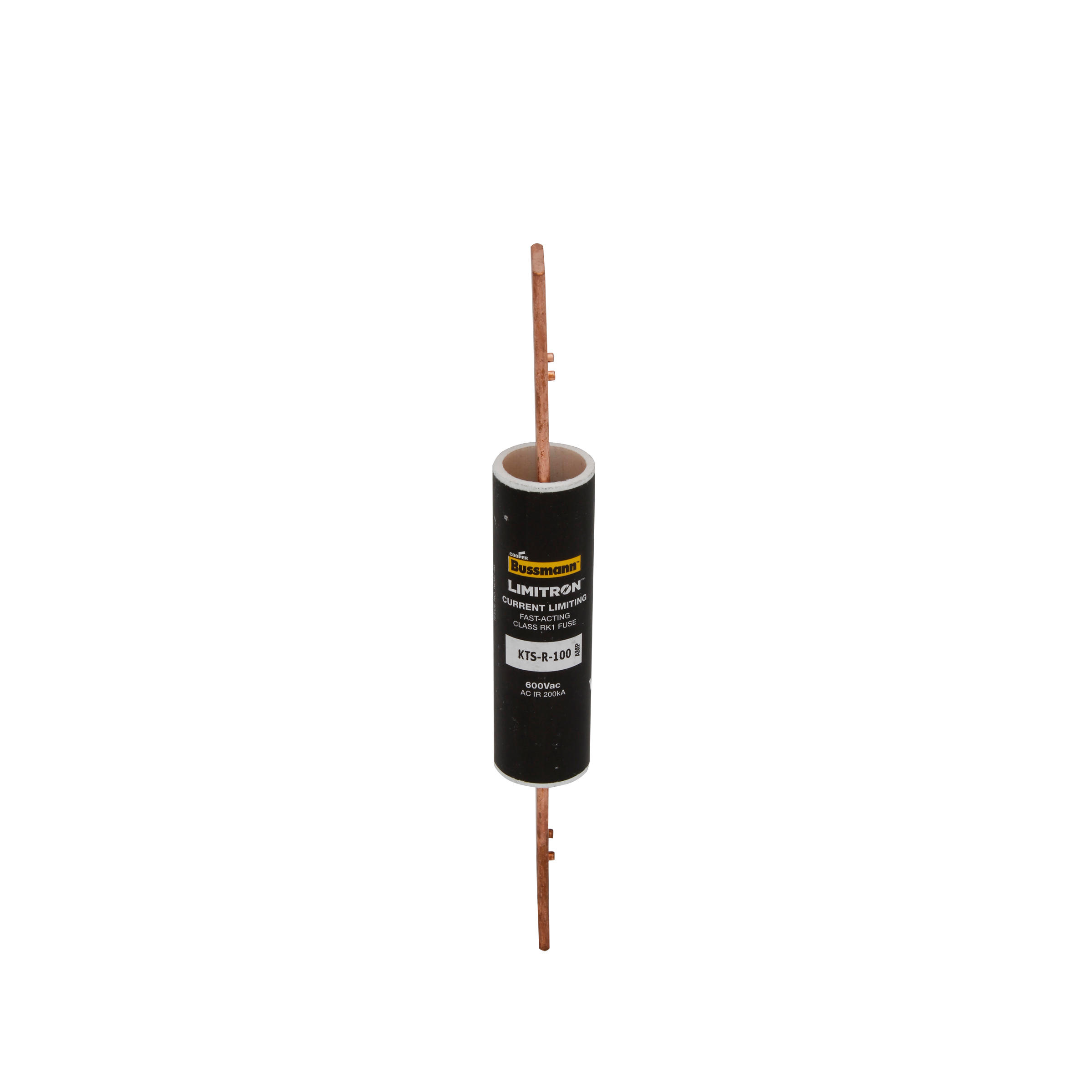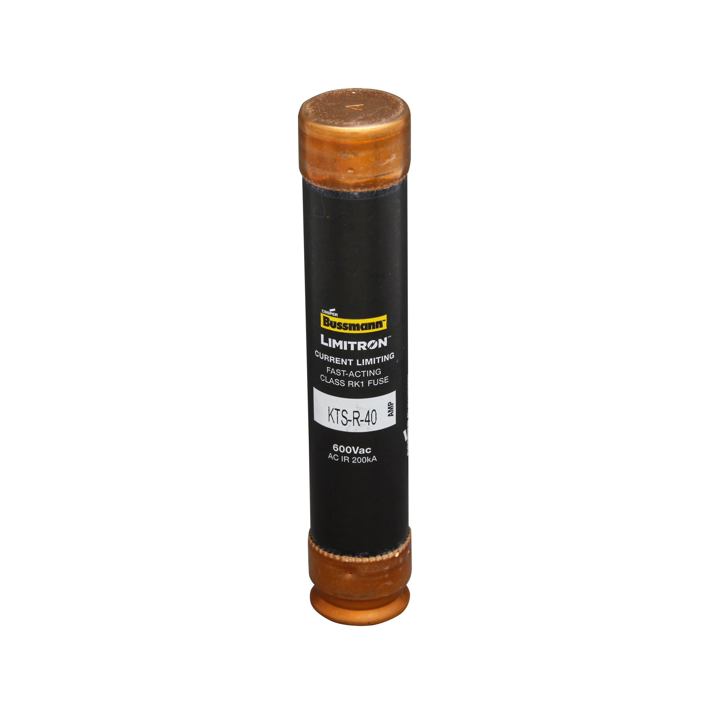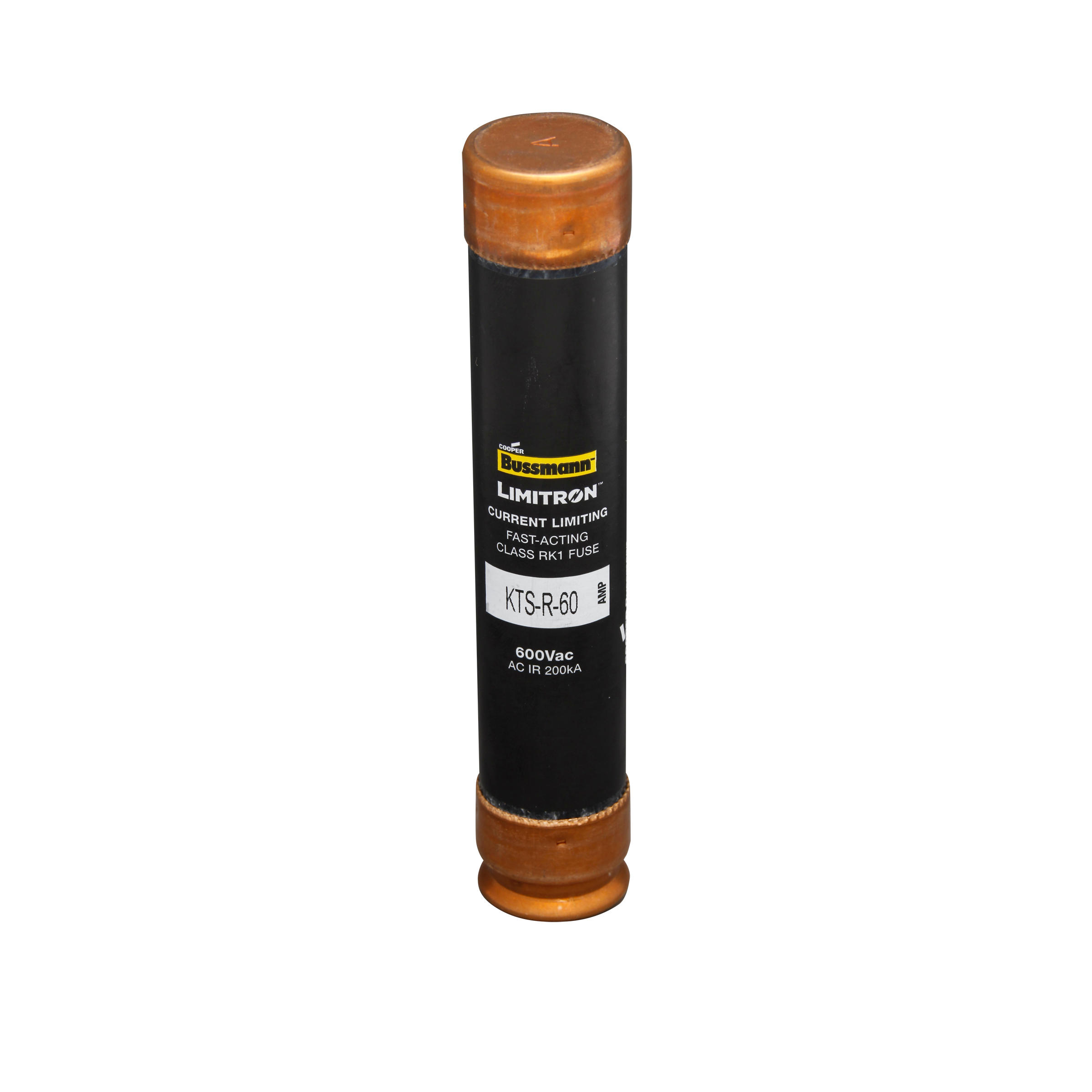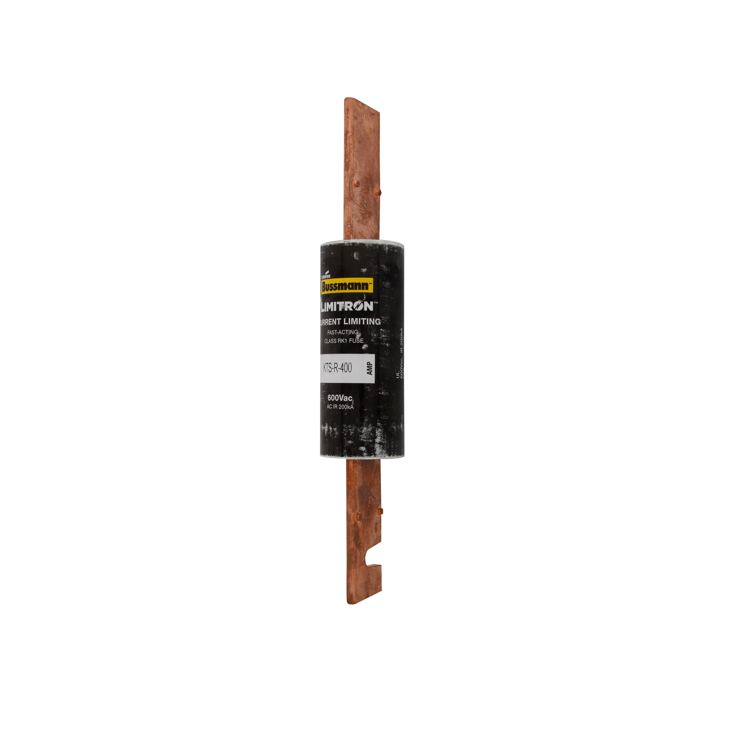 Eaton Bussmann series KTS-R fuse, LIMITRON Fast-acting fuse, 70/30 brass end cap, Panelboards, 1~600 A, 1, Class RK1, Non-indicating, Blade end x blade end, 200 kAIC at 600 Vac, Melamine glass tube, Standard, 600 V