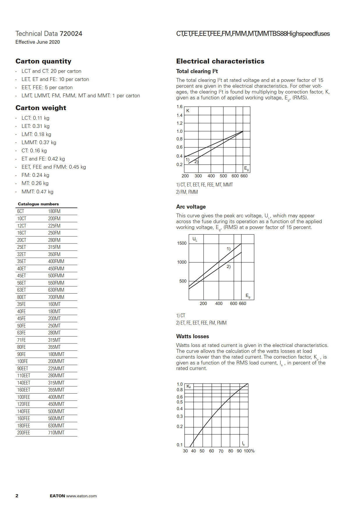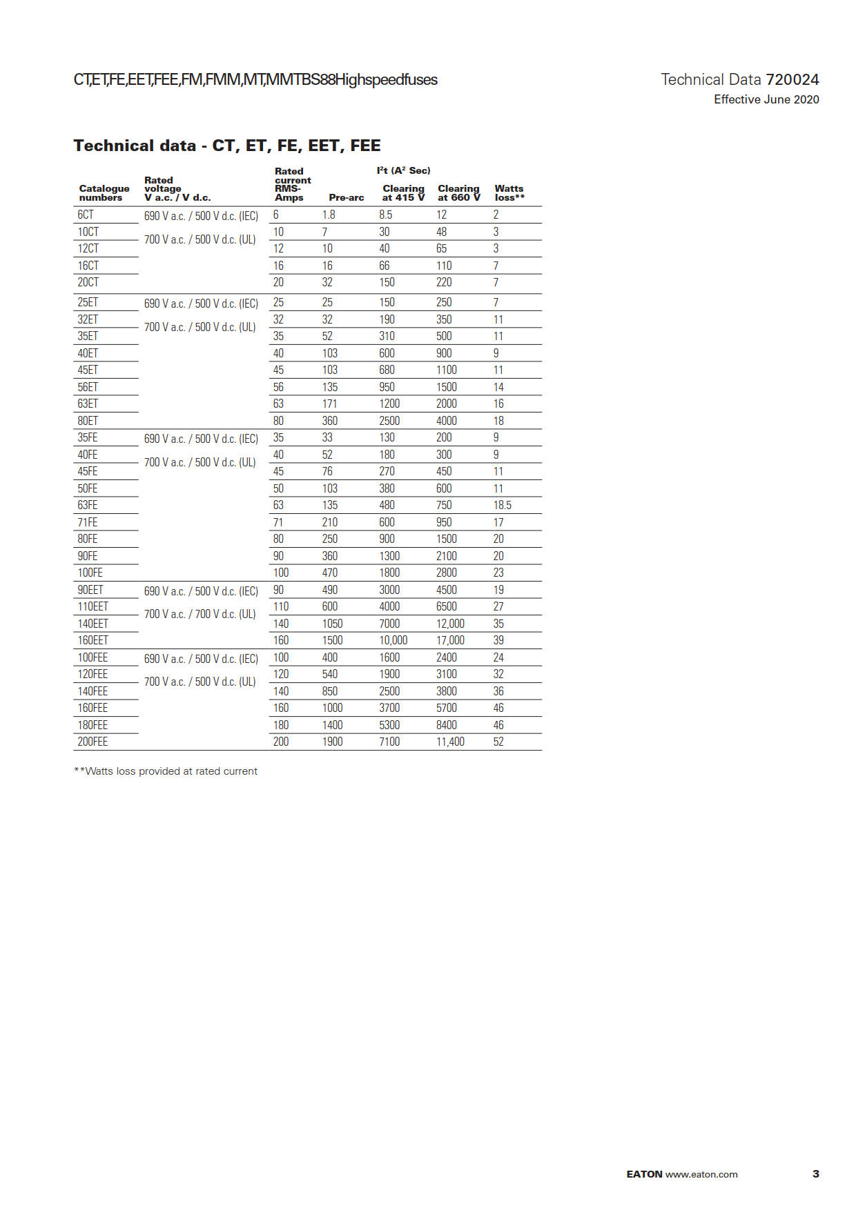Eaton Bussmann BS88 ET series bolt marked high-speed fuse, British standard fuse, high-speed, used to protect DC common bus, DC driver, power converter/rectifier, and starter with reduced rated voltage S.