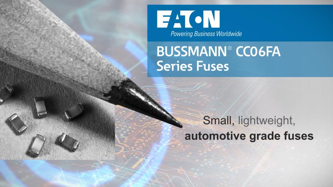 伊顿的Bussmann系列CC06FA系列快动SMD保险丝能够承受-55摄氏度至+125摄氏度的工作温度,具有高达63VDC的高分断能力。CC06FA保险丝是0603尺寸(1.6mmx0.8mm)的轻型部件。紧凑的设计节省了空间,适用于BMS等空间受限的应用。这些芯片保险丝是AEC-Q200合格的。这是一个符合RoHS标准、无卤素、无铅的保险丝系列。